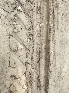 Tire tracks in dried mud